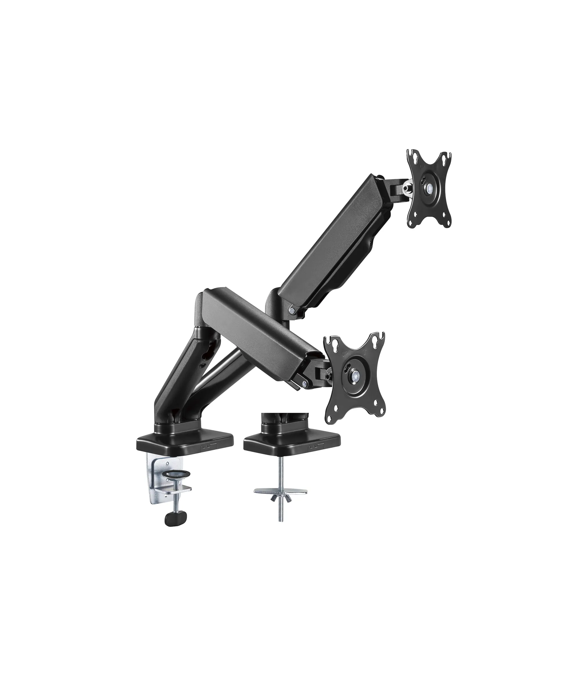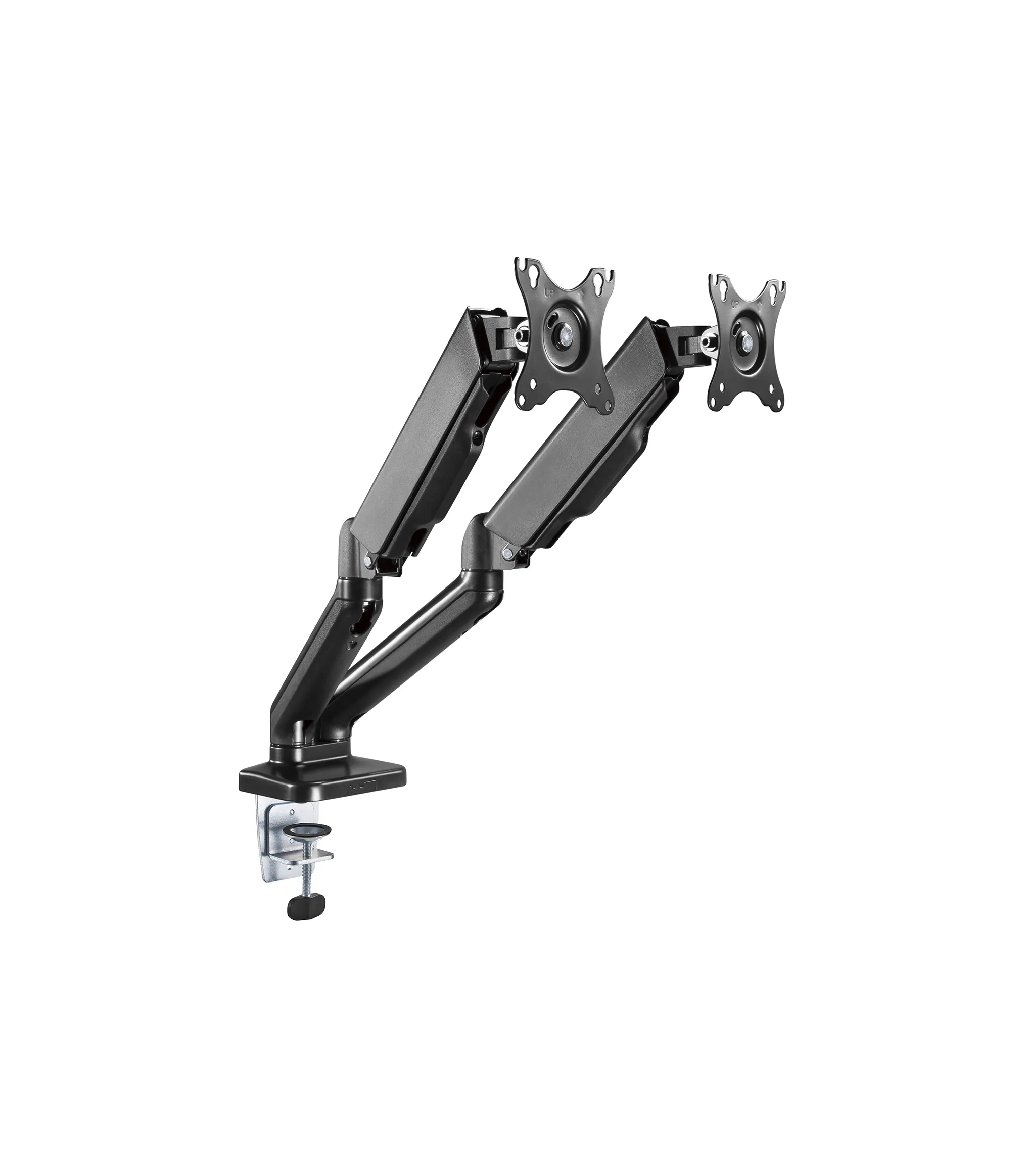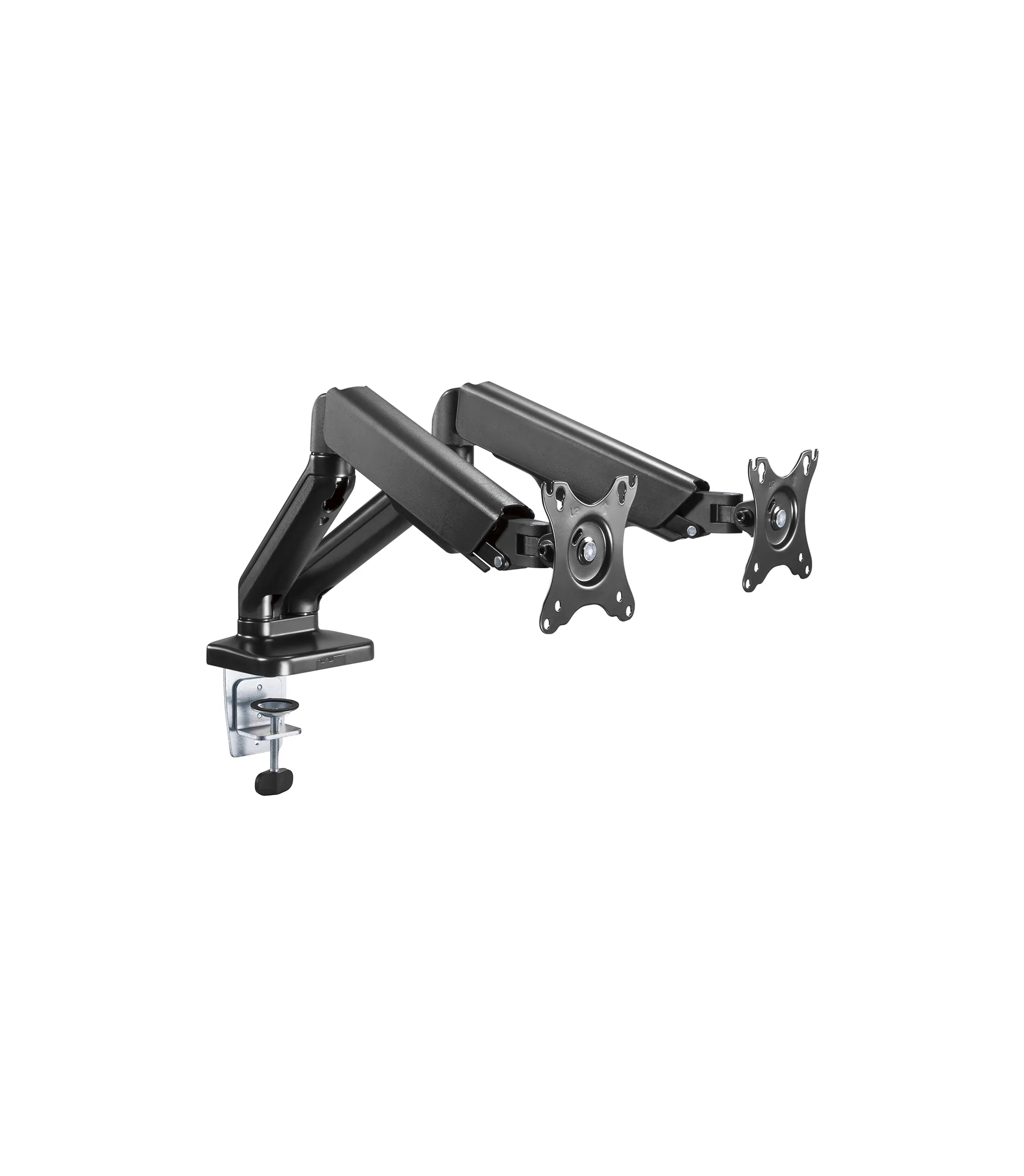 Su mecanismo articulado garantiza un movimiento fluido y estable, ideal para lograr el ángulo perfecto en cada monitor.